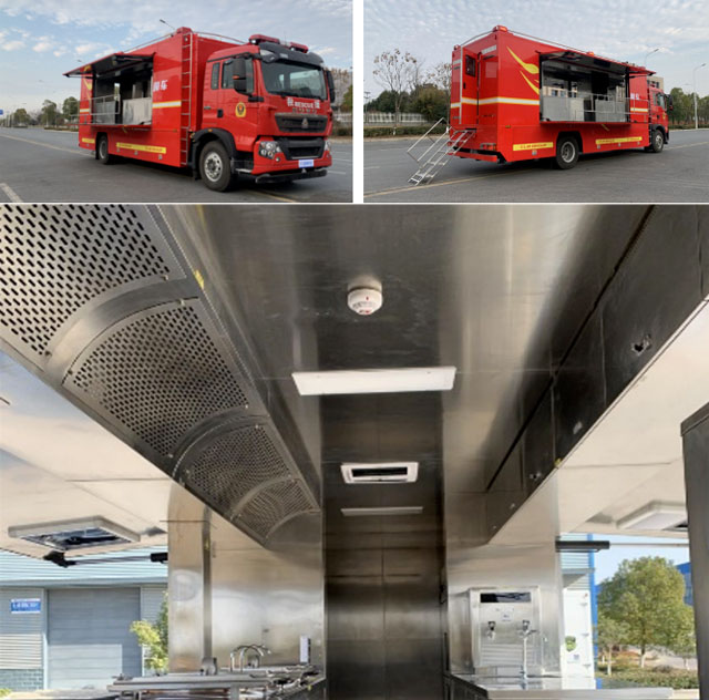 為打造消防后勤保障全生態(tài),后勤保障車主要用于保障救援團隊及受災(zāi)群眾的衣食問題。洗滌保障,可以將衣服洗干凈、烘干、掛燙等服務(wù)。自動化程度高。災(zāi)害事故現(xiàn)場為消防員及人民群眾提供衣物清洗。炊事保障為野外執(zhí)勤人員制作、加工飲食的作業(yè)類專用汽車,最高可滿足一小時為幾百人提供餐食,屬于消防后勤保障類車輛。宿營保障主要裝備床鋪等宿營設(shè)施。集成休息臥鋪等需要,提升了輸送及宿營工作的舒適度。淋浴保障車在在野外執(zhí)行任務(wù)或者邊遠(yuǎn)分散地區(qū)長期工作時的洗浴困難的問題,提高部隊后勤綜合保障能力,是為野外工作人員提供淋浴的作業(yè)類專用汽車。衛(wèi)生車是移動廁所,洗手池及污物收集處理等救援時作為臨時廁所使用的作業(yè)類專用汽車。照明保障車是大型活動,夜間的搶險救災(zāi)是提供照明用途的專用車。