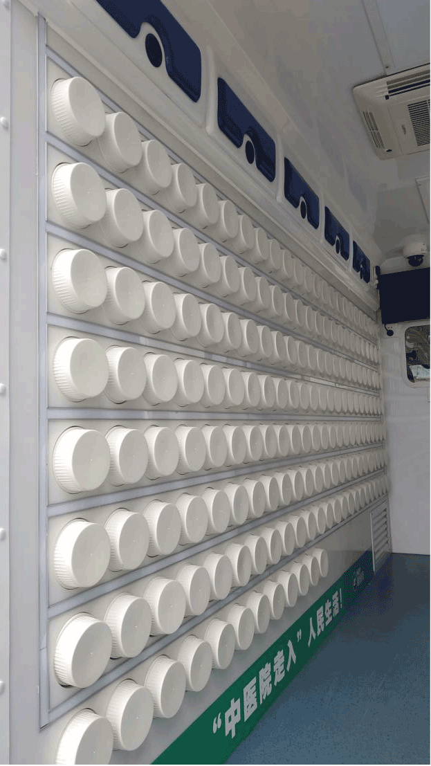 該款移動中藥房車可搭載麻黃、細辛、生姜、葛根、菊花、丹皮、青蒿、生地等上百種中藥,車內(nèi)即可實現(xiàn)快速智能配藥。當配藥醫(yī)護拿到藥方,找到所需要中藥,放入自動發(fā)藥機中,數(shù)分鐘就可以完成藥物發(fā)放。