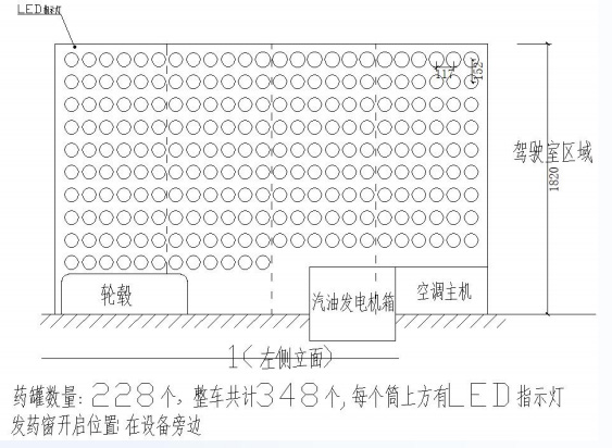 藥瓶柜采用車內(nèi)一體式設(shè)計,開模定制按藥瓶φ91mm設(shè)計,藥瓶放入藥瓶桶后露出底部平面30mm(便于取放)。每個藥瓶桶有LED指示燈,采用燈帶的安裝方式。藥瓶桶的左右中心距離117mm,上下中心距離152mm,車內(nèi)共配有348個藥品桶。